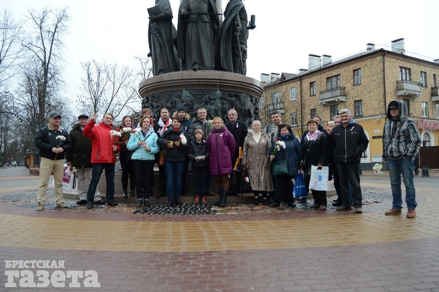 Брестчане поздравили друг друга в Днем Воли и возложили цветы у памятника 1000-летию Бреста.