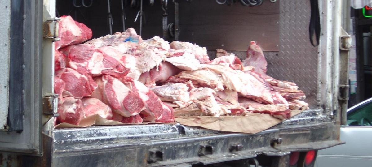 прылавак з мясам у краме