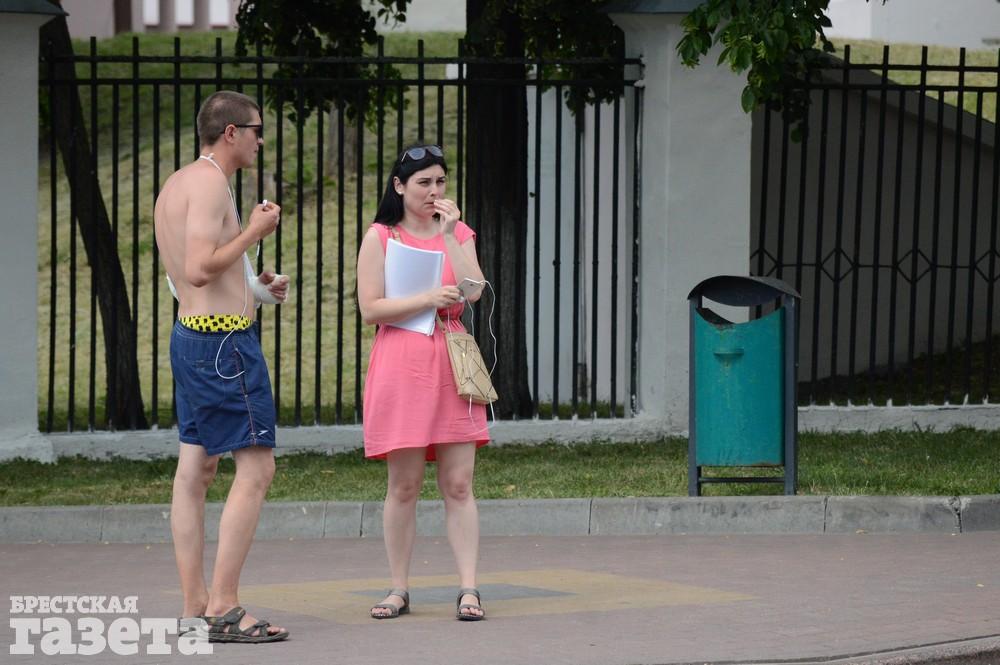 Хорошо, когда пятница, и ты не на работеСоломенная шляпа — не только для пляжа, но и в городеЧем заняться на пляже? Почитать, конечно же!Видимо, прецедентов хватает!По словам спасателей ОСВОД на Центральном пляже со стороны города в выходные собирается до 800 человекЧтобы не задохнуться в машине, периодически приходится проветриватьВ будние дни на пляже в два раза меньше, чем в выходные — около 300 — 400 человекГолову прикрывать обязательно. И не важно чемГоворят, так лучше загар ложитьсяА кто-то в прячется в тени деревьев на набережнойНа пляже на противоположном берегу Мухавца тоже немало людейПрокатиться с ветерком — самое то в такой знойЗонтик для коляски?И, конечно же, мороженое…Модницы могут выгулять шляпыА рыбаки прячутся в тениРабочим приходится не сладко. Зато загар классный!Молодежь уже облюбовала Городской сад. Там много тенька от деревьевПоливать растения в такую жару просто необходимоА если бутылку воды с собой не взял, то можно попить из колонкиРядом с водой, наверное, прохладноТе, кто посмелее, оголяются, как могут.А другие — кутаются от солнцаПо окнам сразу видно, где нет кондиционеровА вместо веера можно использовать любые подручные средстваЧтобы салон не нагревался, лобовое стекло лучше бы прикрытьА пить надо в любую удобную и неудобную минуту. Даже на ходуНу и, конечно же, в такую жару стирка высыхает за считанные минуты